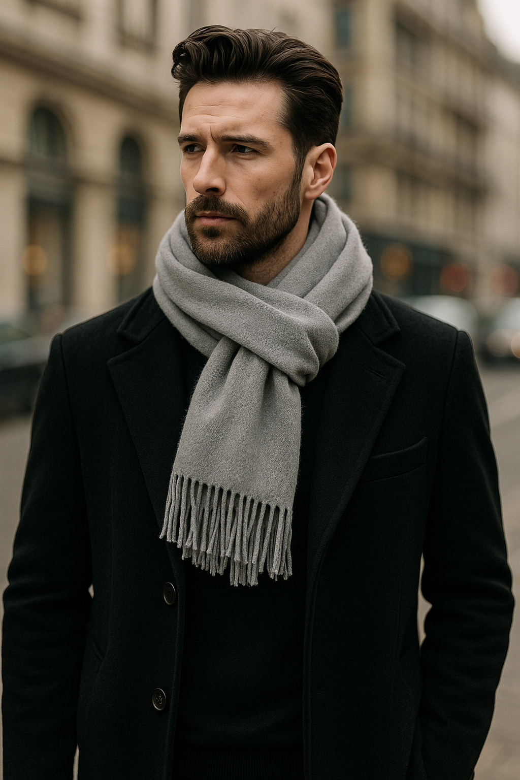 “Versatile and timeless, it pairs perfectly with overcoats, blazers, and heavy jackets. Whether in London, Edinburgh, or Manchester, this Lavoir men’s winter scarf conveys refined elegance and confidence. Limited stock — secure yours today!”